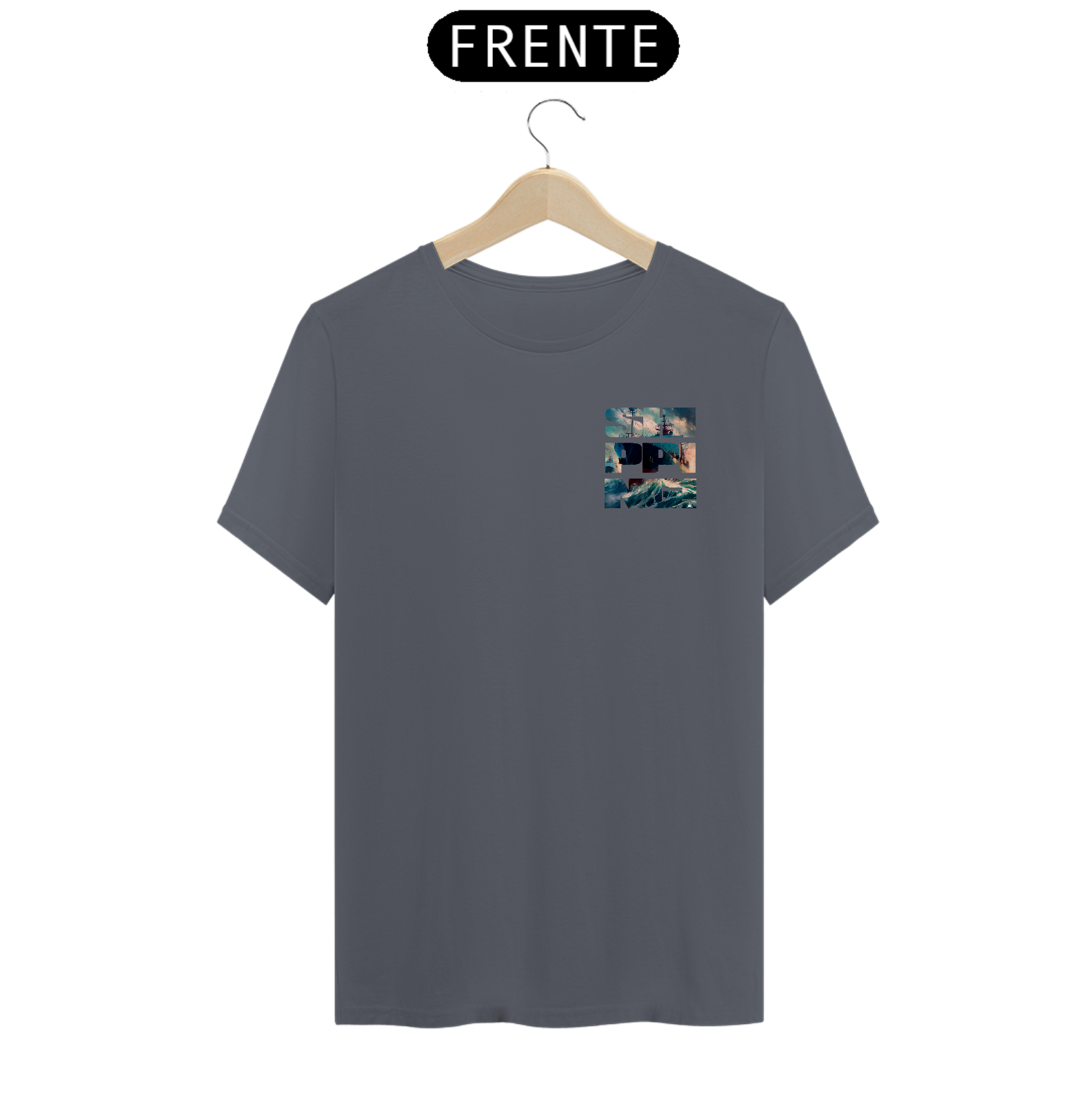 O porto no seu estilo. Confeccionada em algodão Pima, o mais nobre do mundo, a Shipping Pocket Pima traz conforto premium, caimento impecável e um detalhe que fala alto: a palavra SHIPPING estampada no peito, com textura fotográfica que remete ao universo marítimo.